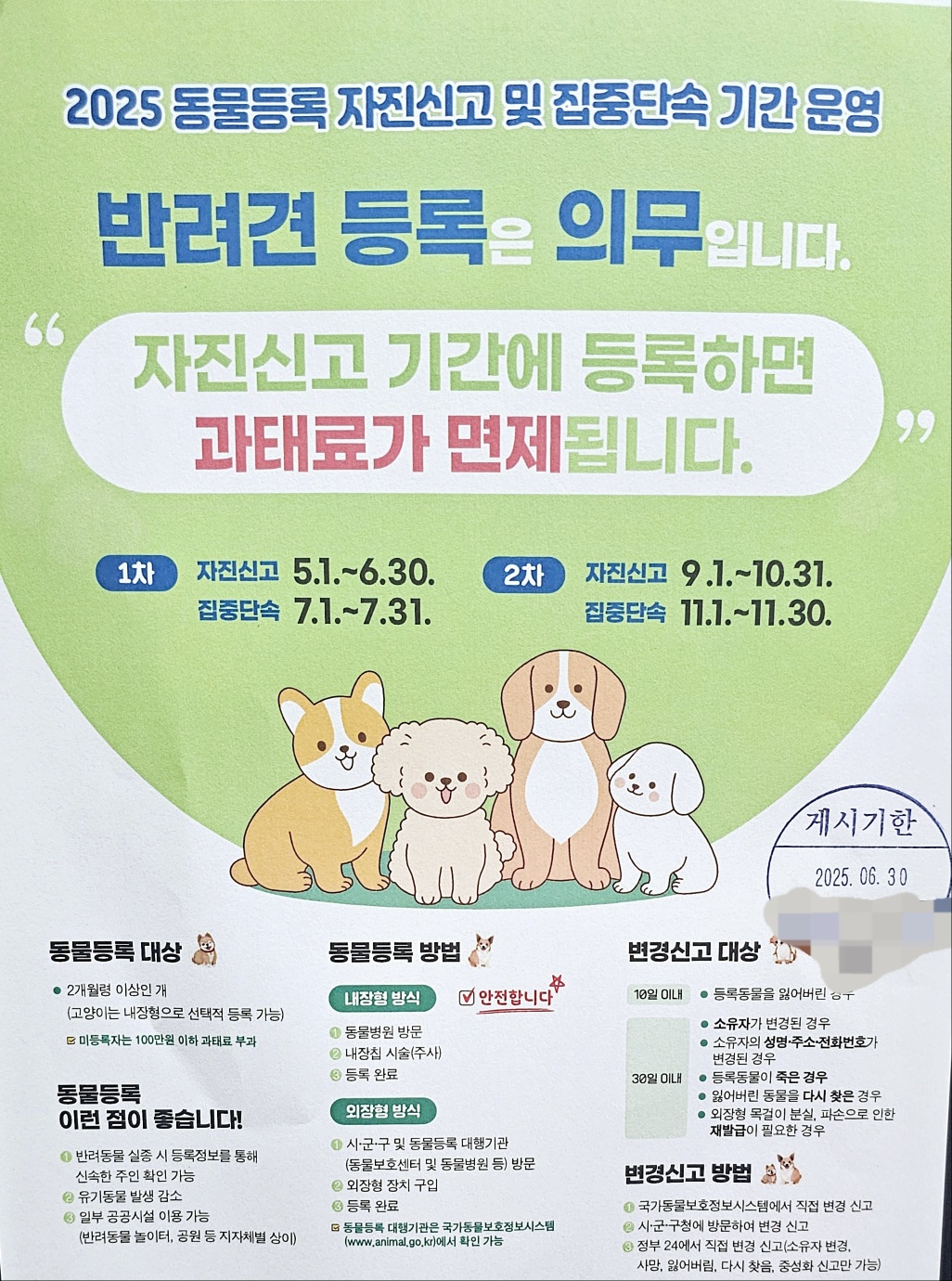 2025년 동물등록 자진신고 및 집중단속 일정